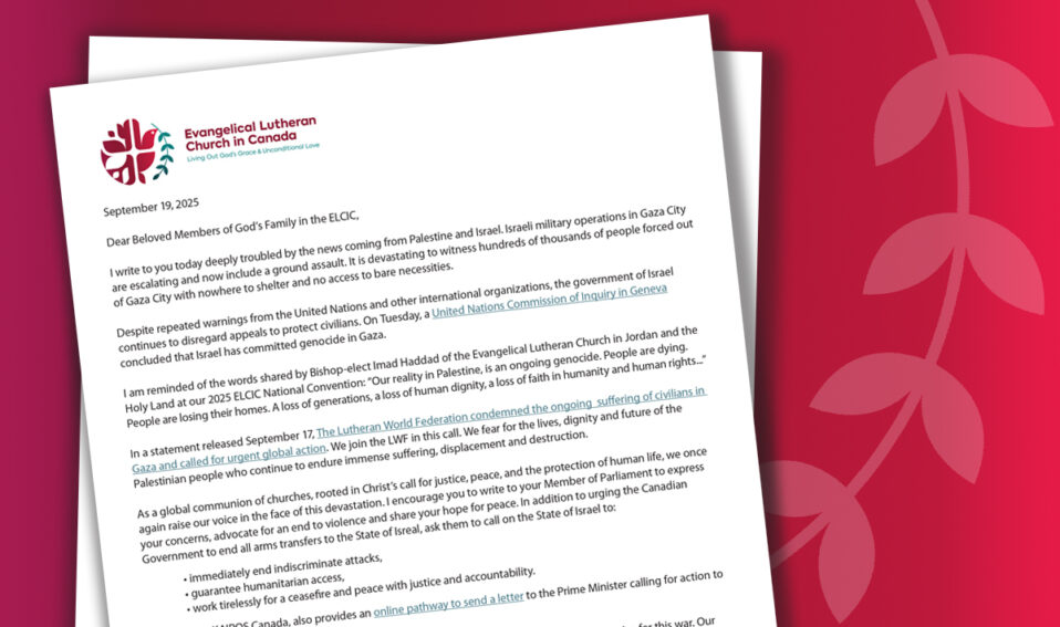 On the second anniversary of the war between Israel and Hamas, Evangelical Lutheran Church in Canada (ELCIC) National Bishop Larry Kochendorfer and Canadian Lutheran World Relief Interim Executive Director Michael Pryse write to the church with heavy hearts.